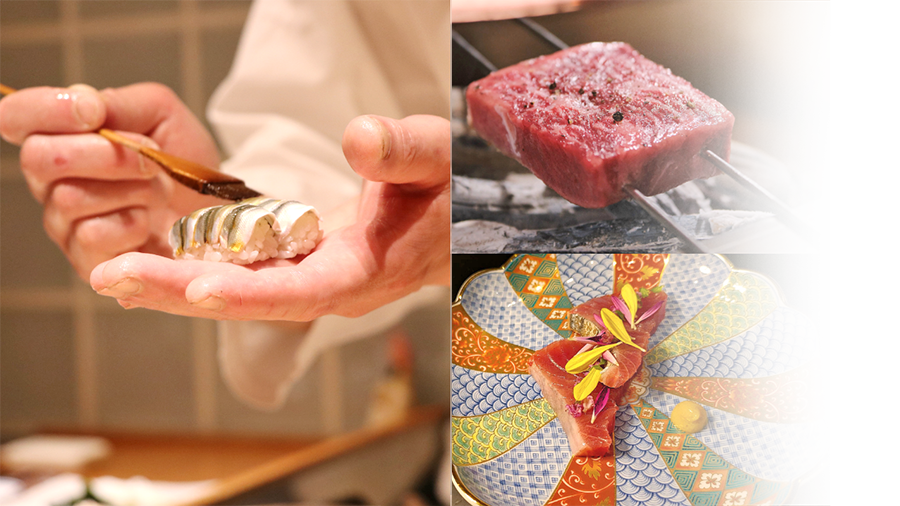 旬の食材を丁寧に仕立て、目の前で仕上げる一皿一皿。